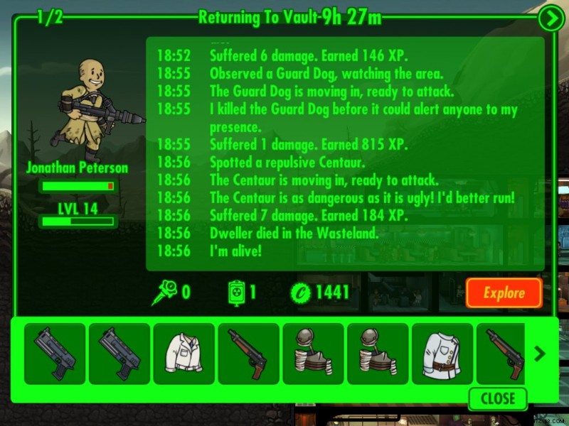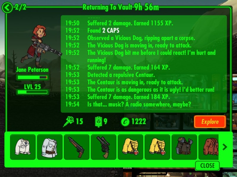 最初は、Vault の人口が少なかったとき、空いている人を送り、残っていた鎧と武器を装備させ、数時間後に死ぬように送りました。人口が増加し、より多くのことを学び始めると、Fallout Shelter でウェイストランドを探索することを理解しました。 は、サバイバーに優れた装備を完全に装備させ、すぐに大金を稼ぐための、最も簡単で最速の方法です。