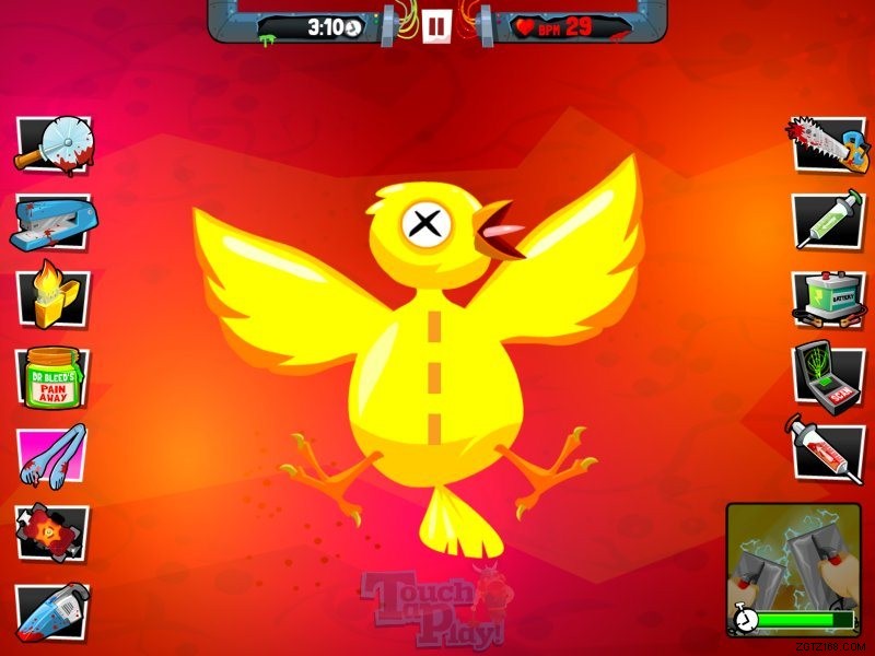 4. チェーンソーを使って心臓を切り取ります。トングで取り外し、新しいものを所定の位置に置き、ライターとヒーリング ジェルを使用します。最後に、ホッチキスとライターとジェルを使って鳥を癒します。