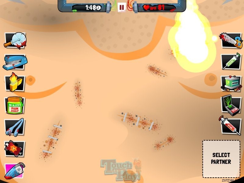 1. このレベルでは多くのカットを行う必要があります。それらにはホッチキスを使用し、ライターを使用します。小さなカットから始めて、次に大きなカットで始めます。大きなカットは常に発火するので、掃除機を使用してください。その後、ヒーリングジェルを塗ってください。