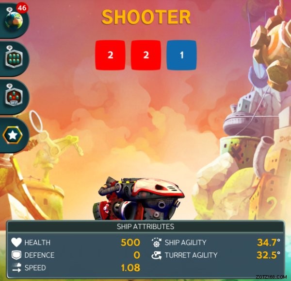 シューターの属性、特に船の敏捷性と砲塔の敏捷性はあまり好きではありません。これらは、船の向きを変えて照準を合わせる際に非常に重要であり、平凡な数はあまり役に立ちません.それ以外の場合、船は非常に高速 (ゲームで 2 番目に速い) ですが、操縦と照準に関しては少し劣ります。