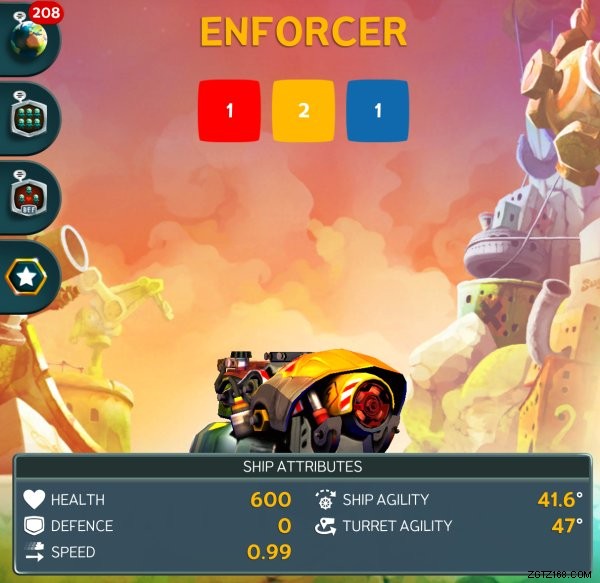 Enforcer は、Rovio のバトル ベイで最も巨大で印象的な船の 1 つです。まともなヘルスと安定した速度を備えており、船と砲塔の敏捷性に関しても印象的な統計を備えています。実際、照準とステアリングに関しては最高です (ステアリングに関してはスピーダーだけが勝っています)。