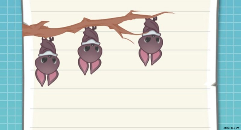 「本物のコウモリはどっち?」 2 匹のコウモリが落ちるまでデバイスを振ってください。