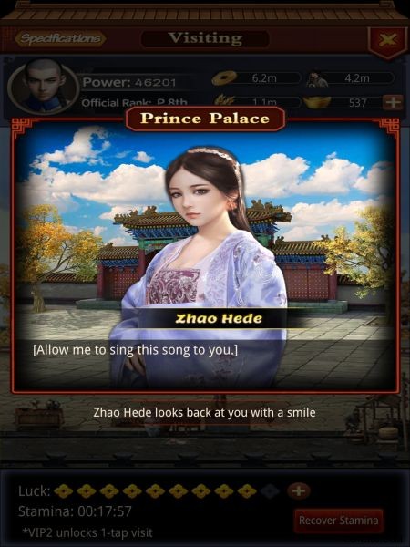 ゲームでアンロックした妻たちは、いつでも大邸宅であなたを待っています。そこに十分な気力があれば、彼らを「訪ねる」ことができ、息子や娘を産むチャンスがあります。また、訪問するたびに、訪問した親友に XP ポイントが与えられます。