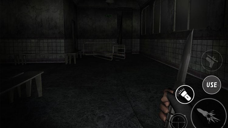 画面の左上隅にあるレーダーは、現在どの方向を向いているかを示します。敵は赤い点で表示され、ヘルス ピックアップは緑の点で表示されます。病院の電源が壊れているため、廊下は薄暗く、常に前方視界が確保できない可能性があります。レーダーに注意してください。あなたに忍び寄ろうとしている可能性のある近くのゾンビを警告します。
