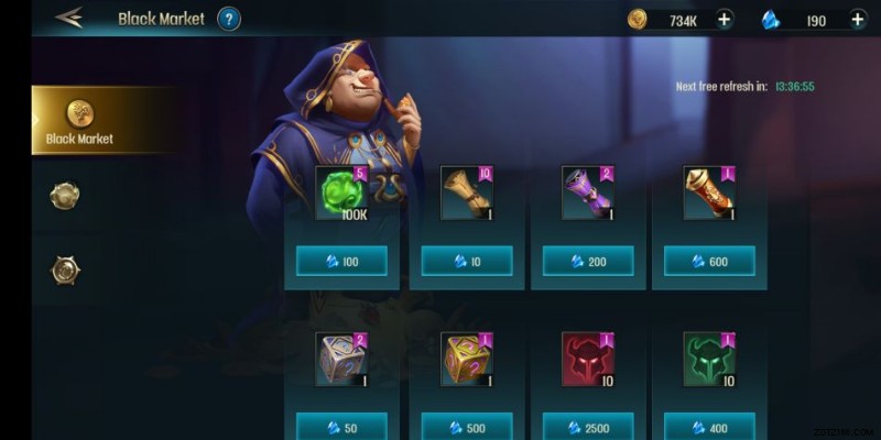 ヒーローを入手するもう 1 つの方法は、ゲーム内のストアを使用することです。そのような店は、ギルド (ギルドに参加していると仮定)、ブラック マーケット (怪しげな商人ですが、良いものがあります)、ヒーロー マーケット、ハート マーケットで見つけることができます。