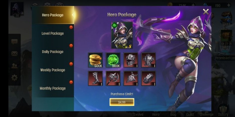 他の人よりも早くレベルアップしてヒーローを集めたい場合は、[パッケージ] タブをチェックしてください。RL のお金で、ゲーム内の非常に素晴らしいグッズを手に入れることができます。ヒーロー パッケージからレベル パッケージまで、さまざまなデイリー、ウィークリー、マンスリー パッケージから選択できます。