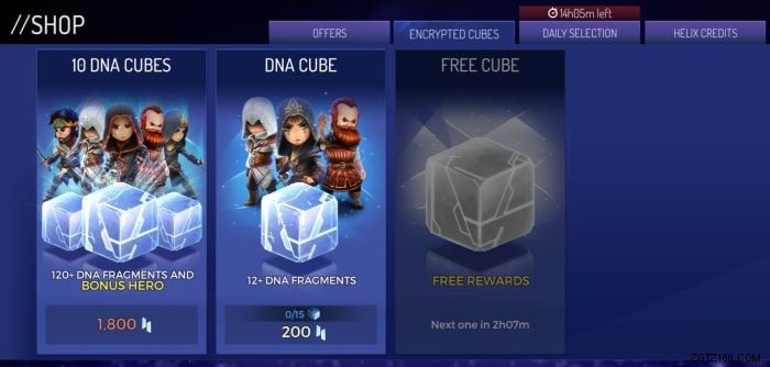 ゲーム内でより多くのヒーローをアンロックする主で最も簡単な方法は、ショップで DNA キューブを開くことです。取得に関しては 3 つのオプションがあります。毎日無料の DNA キューブを含みますが、一度に 10 個の DNA キューブを取得できるものが最善です。
