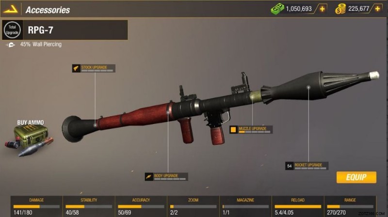 まだ気付いていないかもしれないことは、アップグレード です オプション。ご存知のように、武器には年数かかります これは時々イライラし、ターゲットを1つか2つ逃す可能性があります。これは、リロード時間をアップグレードすることで防ぐことができます。アップグレードが早ければ早いほど、将来狙撃しやすくなるため、最初にこれに集中するのが最善です。