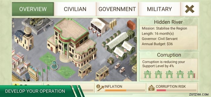 しかし、ここからは少し複雑になり、オペレーションへの追加投資は状況に応じて変化します。安定性を高めるために民間人にできるだけ投資したいと同時に、政府(腐敗をチェックしてください!)と軍事にも取り残されないようにします.通常、ゲーム終了までは 4 ~ 5 個の兵士ユニットがあれば十分です。