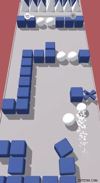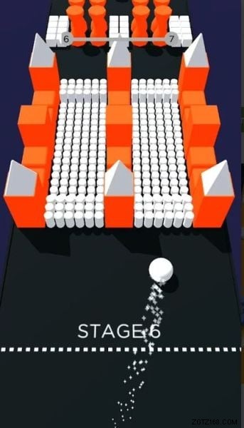 先に進みすぎると、白いブロックの後ろに隠れていた色付きのブロックにぶつかる危険性があるため、簡単にはいかない可能性があります。たまたま前に出てしまった場合は、動きを遅くして、ボールを画面上のより快適な位置に戻してみてください。