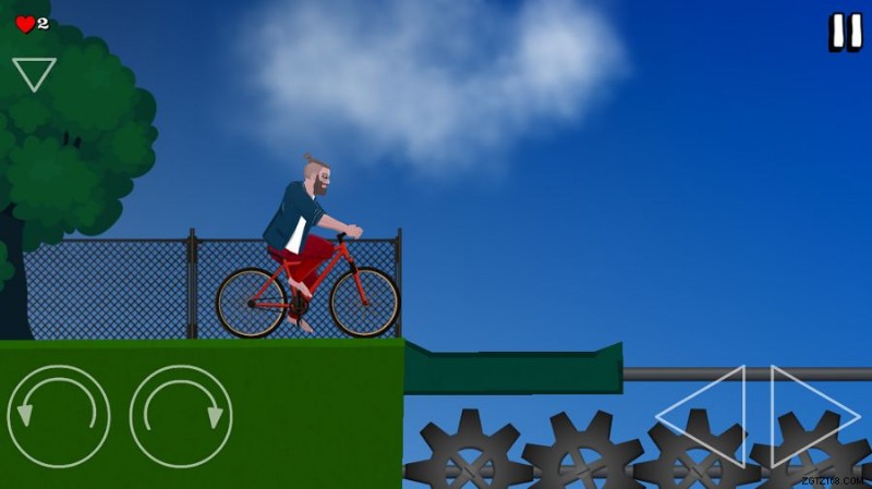 自転車やゲーム内のおどけた乗り物に乗るときは、安定性が増すので少し楽になります。キャラクターが転んだ場合 (そして転落を生き延びた場合)、左上の矢印を 2 回タップするだけで再び自転車に乗り、進み続けることができます。