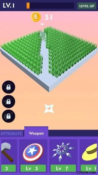 The weapon you choose doesn’t really matter in terms of clear speed, so they are purely aesthetic. Some of the weapons you will unlock by simply playing the levels (level 4, 6, 8, 12). Other weapons will only be available to unlock by watching an advertisement or two.