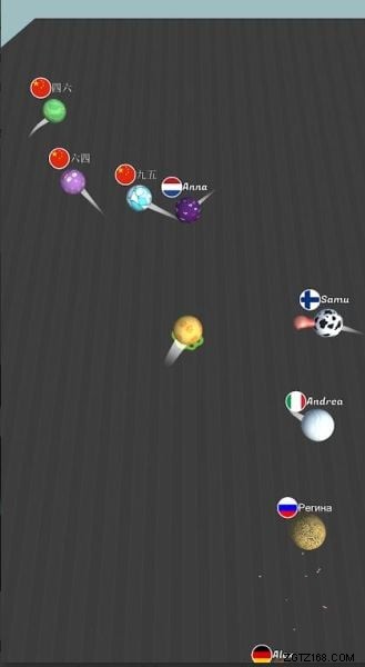 – 同じプレーヤーに何度も何度も跳ね返って、彼を追い出します。それらが大きい場合、これはさらにうまく機能します。自分のボールを他のプレーヤーのボールに押し込み、ボールを 1 か所に固定します。これにより、彼らが逃げるのがかなり難しくなり、最終的には死ぬかもしれません.