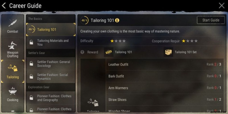 仕立てでキャリア ポイントを獲得したい場合は、 あなたがしなければならないのは、服やバッグを作り続けて、テーラリングを増やすことだけです そして処理。 これらのスキルにより、必要なすべての EXP が得られます。