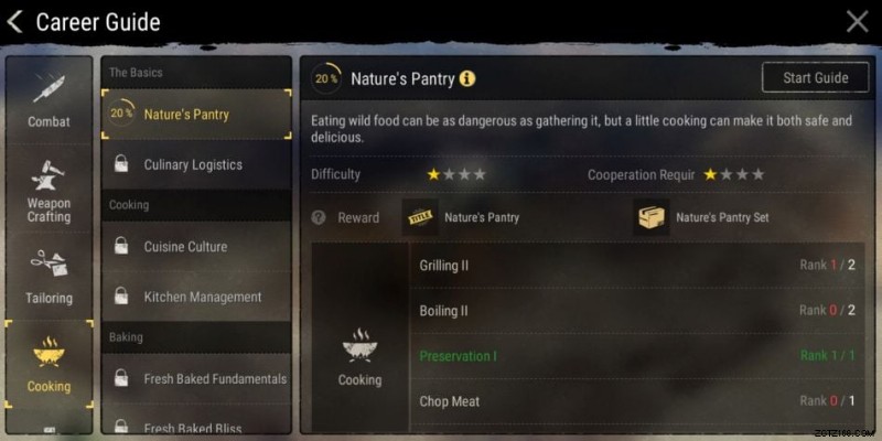 料理のキャリアを上げるには、料理が必要です。 武器 / ツール 建設 そのため、必要なものをすべて作成できるようになるまでには少し時間がかかりますが、心配はいりません。必ず取得できます!