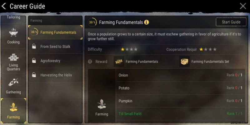 農業でキャリア ポイントを獲得したい場合は、 最初のキャラクターを農家にしていない場合は少し時間がかかるかもしれませんが、それでも可能です!見るたびに大量の泥を集め、手なずけた島に行って Till Small Fields を作りましょう。