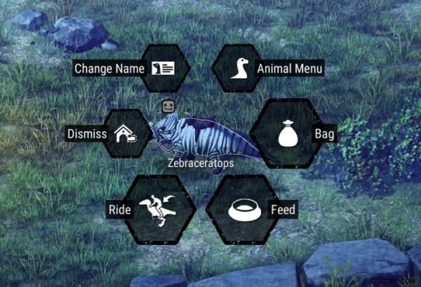 それを使用できるようにするには、その動物と絆を結ぶ必要があります。これにより、それを召喚して、基本的に提供されるすべてのオプションにアクセスできます。テイムして絆を結んだ恐竜を召喚するには、メイン メニューの動物ボタンをタップして、そこから選択します。