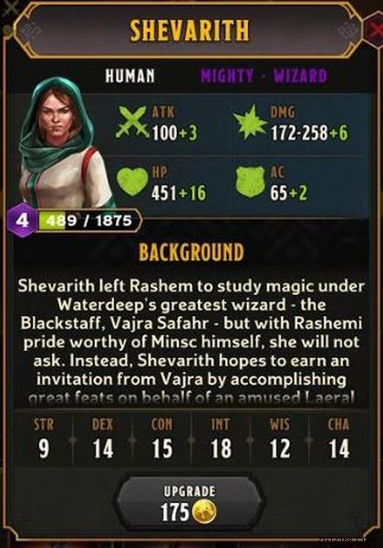 Shevarith は、私が主に使用しているもう 1 つのキャラクターの 1 つであり、彼女が与えるダメージが大きいため、レベル 4 でも使用しています。