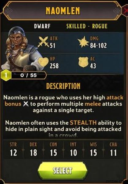 ナオムレンは攻撃ボーナスが高く、同じターゲットに対して複数の近接攻撃を実行できます。彼女はまた、複数の敵に直面したときに攻撃を受けるのを避けることができるステルスを持っています.彼女の AC と HP はそれほど高くないので、彼女はそのプレッシャーの一部を軽減するために、戦車を備えたチームでうまくいく可能性があります。