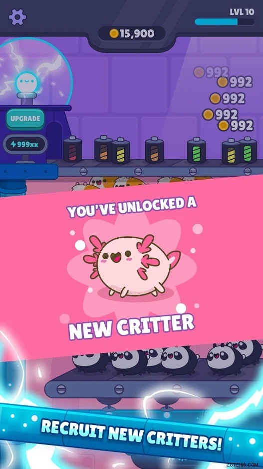 Idle Critters の主な進行方法は、発電所のレベルを上げることです。コインと同じように、時間の経過とともにゆっくりと経験値を獲得しますが、新しいものをより速くロック解除したい場合は、生産ラインをスピードアップするだけで、多くの経験値を獲得できます.ゴールデン クリッターを捕まえることも経験の価値があるので、それにも注目してください。