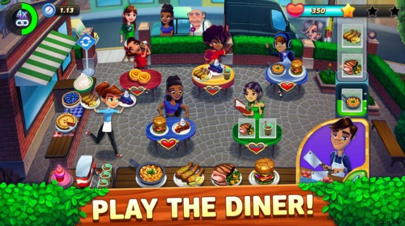 以前の Diner Dash ゲーム (少なくとも PC 用) に精通している場合は、このゲームがほとんど同じパターンに従っていることを知っているでしょうが、私の意見では単純化されています。このゲームでは、注文をカウンターに持っていく必要がなく、すぐに注文を受けることができます。また、私の意見では、顧客を座らせるのもずっと簡単です。