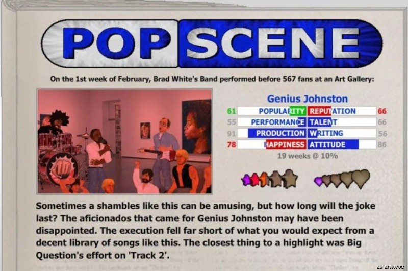 ポップシーンに欠かすことのできないバンドですよね?もちろん違います!ですから、業界の最高のスター全員でバンドを組むことを検討する必要があります!自分自身のバランスをとるかなり高い統計を持つメンバーの募集を開始できます (たとえば、パフォーマンスと生産性が高い場合は、才能と執筆の属性が高いチームメイトを探すことができます)。