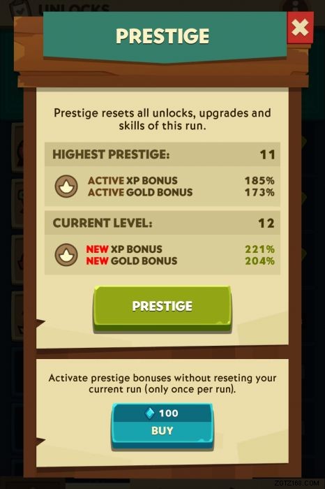 以前のプレステージより 3 ~ 5 レベル上になったらすぐに、プレステージを試してみることをお勧めします。また、長い休憩の後に再びログインするとすぐにプレステージします。時間はかかりますが、威信をまったく持たない場合 (またはそうするまでに時間がかかりすぎる場合) よりも早く最後までたどり着くことができます。