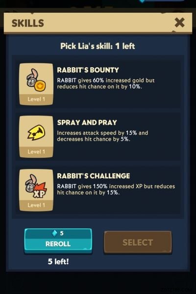 提供されている 3 つのスキルから常に 1 つを選択する必要があります。毎回、ジェムを使ってリロールするオプションがあります。