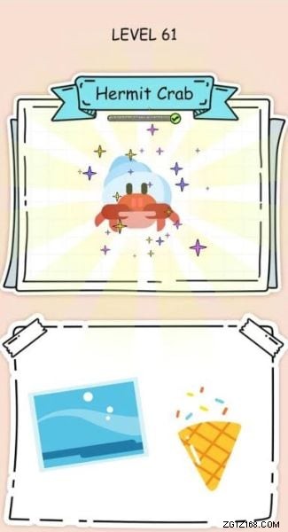 アイスクリームのフィリングを上にドラッグし、その上に赤いカニをドラッグしてヤドカリを形成します !