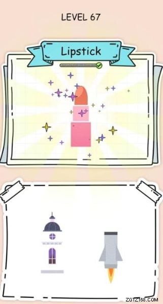 教会の塔の本体を上部 (ピンクの部分) にドラッグし、その上にロケットの赤い頭をドラッグして 口紅 を形成します。 !