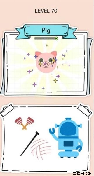 毛糸玉を上(ピンク色の部分)にドラッグし、ロボットの顔を上に置き、マラカスの端を円の上に置き、豚を形成します。 !