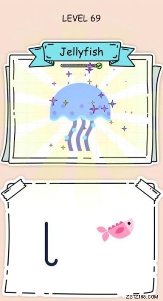 開いた傘を上にドラッグし、紫色の波を傘の下の魚の横に配置して、クラゲを形成します !