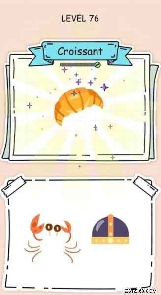 バイキングの兜の角を上にドラッグし、次にカニの体を取り、上下を逆にして上と中央に置き、クロワッサンを形成します !