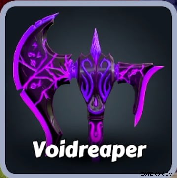 2 番目の近接武器は ヴォイドリーパー です .紫色の斧は虚無魔法の力を使って敵を倒します。この斧は非常に重いため、振るのに時間がかかりますが、そのサイズのためにFrostbiteよりも射程がはるかに長くなります。 .それは 50 のダメージを与えますが、あなたの射程の端 (塗りつぶされたセクションで示されているように) で対戦相手を攻撃すると、100 のダメージを与えます.
