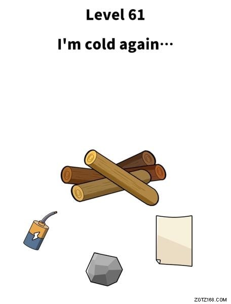 電池を丸太、紙、最後に岩の上にドラッグします。火がつきます!