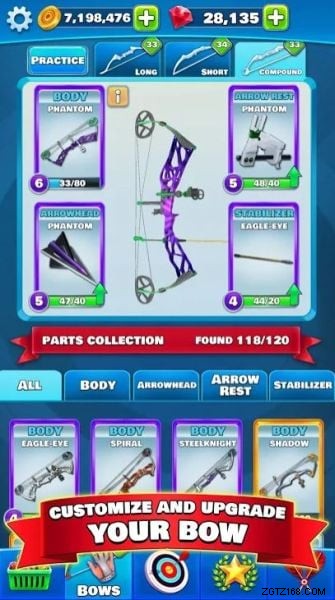 そのためには、ゲームでロックを解除するさまざまなアリーナで練習できる練習ツールを使用することをお勧めします。この練習ツールを見つけるには、画面下部の弓メニューをタップすると、長弓のすぐ隣に練習ボタンが表示されます。