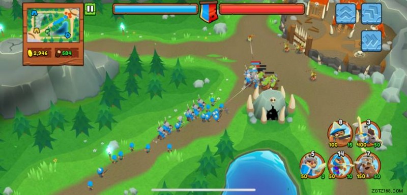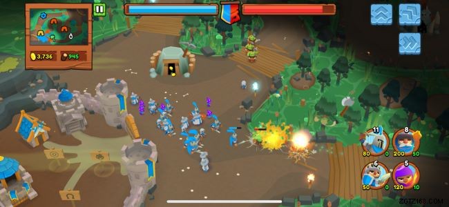 味方ユニットをタップアンドホールドして、時間の経過とともにゆっくりと回復することもできます。グループを敵の基地まで追跡すると、小競り合いを生き延びれば、完全に回復することができます。ただし、グループに注意を払う必要があります。すぐに回復しないと、次の遭遇時におそらく倒れるからです。