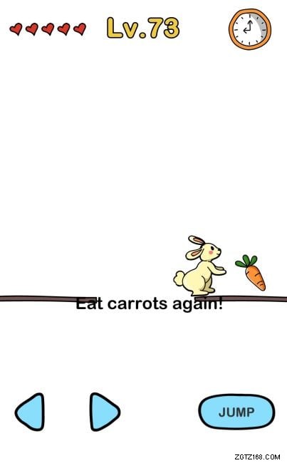A:テキストをドラッグしてギャップを埋め、橋のように機能させてから、バニーがニンジンに到達するまで右矢印をタップします。
