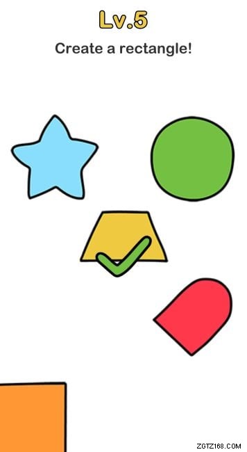 Q:果物を左から右にタップしてから、六角形、円、長方形をタップします。