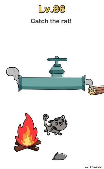 A:丸太を火の上にドラッグし、そこから煙が出たら、パイプの右側に置きます。ネズミが反対側から出てくるまで、パイプの左側にある煙をタップアンドホールドします。