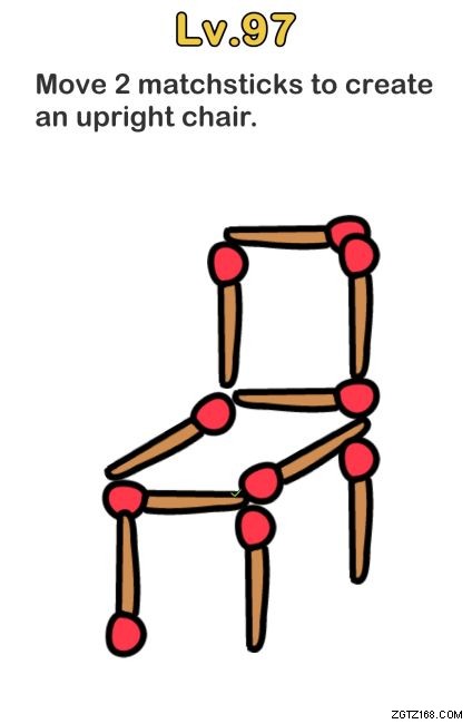A:一番下のマッチ棒を一番上にドラッグし、次に一番左のマッチ棒を右端までドラッグして椅子を作成します: