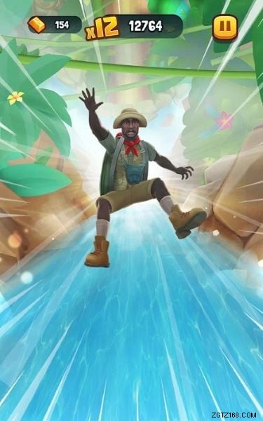 コースのあちこちに金が散らばっていて、できるだけ集めたい。 Jumanji:Epic Run は、他のエンドレス ランナー ゲームと同じように操作できます。右または左にスワイプしてレーンを変更し、下にスワイプしてスライドし、上にスワイプしてジャンプします。できるだけ多くの金の延べ棒をつかみながら、できるだけ長く走りましょう!