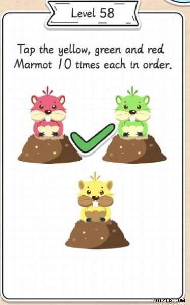 Q:黄色、緑色、赤色のマーモットを順番に 10 回タップします。