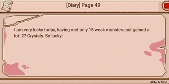 テキスト:「今日はとてもラッキーです。会ったのは 15 だけです。 弱いモンスターですが、多くを得ました:27 クリスタル。運がとてもいいね!"