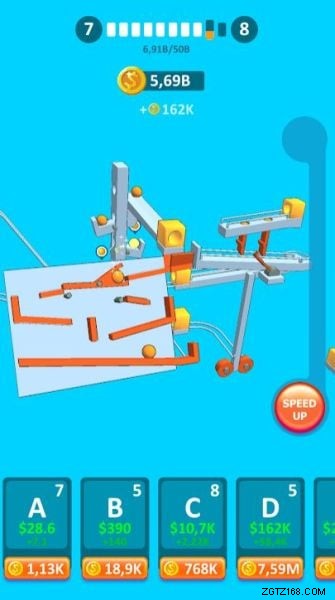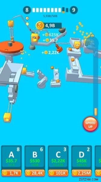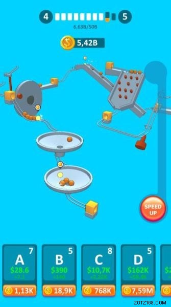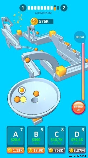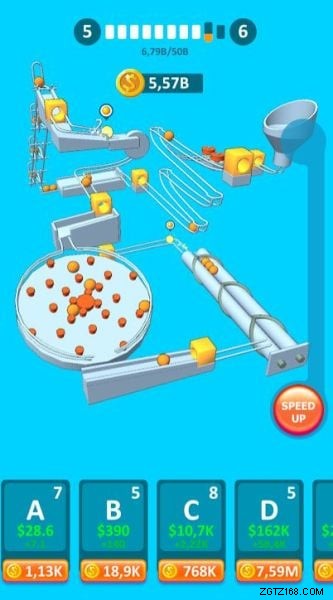 ゲームの核となるのは、すべてのメカニズムをスターでアップグレードすることです。これにより、各アップグレードで少しずつスピードアップし、その過程で多くのコインを作ることができます。基本的に、ゲームのプレイを開始するとすぐに、最初のオプションをアップグレードすることから始めます。これにより、ボールをより速く取得できます。