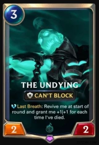 これは、ゲームでの私のお気に入りのカードの 1 つです。これは、召喚するマナが8に達し、敵が拒否を持っていない場合、対戦相手のネクサスを非常に迅速に破壊します.つまり、キルされても手札に戻り続ける「ラストブレス」によって何度でもスキルを発動できるので、何度でもスキルを発動し続けることができるのだ。