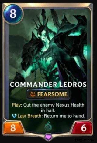 このカードは、正しくプレイすれば数秒で敵のネクサスを破壊できます。このカードを最大限に活用するには、司令官レドロスと一緒にプレイして彼に使用する必要があります (彼は攻撃力が 8 であるため)。彼のスキルと合わせて、「ノクサス」と言うのと同じくらい速くゲームを終了します。