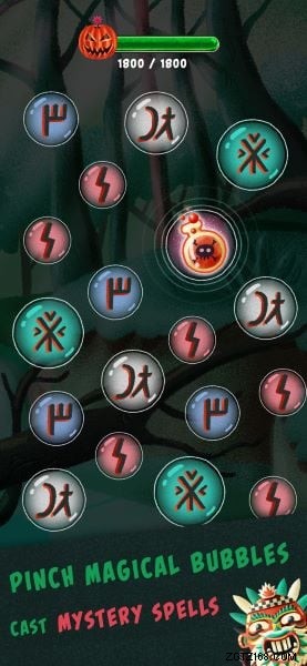 Voodoo Mambo は、かなりユニークな制御方法を特徴としています。浮かんでいるバブルのルーン文字を組み合わせるには、画像をズームインまたはズームアウトするように画面をつまむ必要があります。 2 つのバブルを一緒につまむと、融合してより大きなルーンになります。