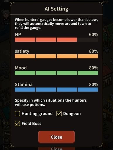 また、HP 以外のすべてのゲージを 80% に増やします。これにより、リソースの消費が最適化され、ゲームで可能な限り多くの戦利品を得ることができます.