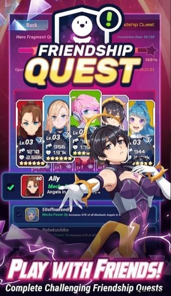 Once you are in the recruiting interface, you can do your daily 1 free recruit of a random hero! Along with that, there is the Angel Recruit option which costs 140 for 1 recruit, and 1129 for 10 recruits (20% off). This will give you guaranteed a 2 star Angel from the 10 recruits.